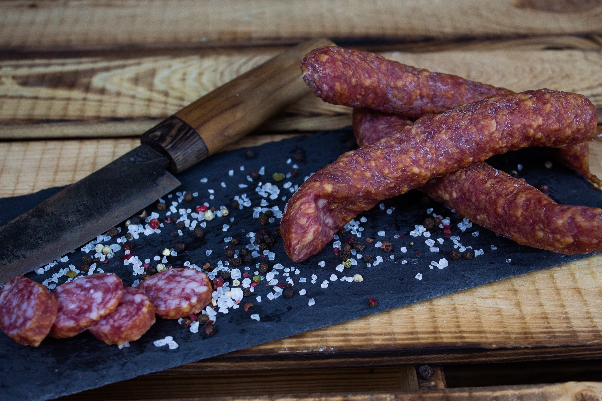 Entdecken Sie unsere köstlichen Hüttenwurzen, die mit ihrem knackigen Biss und ihrem rauchigen Geschmack einen rustikalen Genuss bieten. Diese handwerklich hergestellten Würstchen verbinden traditionelle Rezepturen mit hochwertigen Zutaten und werden nach alter Tradition geräuchert. Genießen Sie den rustikalen Charakter und die einzigartige Kombination aus Knackigkeit und rauchigem Aroma, die diese Hüttenwurzen zu einem wahren Gaumenschmaus machen.